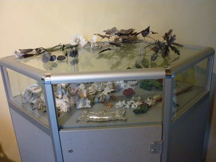 De bezoeker krijgt een goed beeld van de diverse onderdelen, waaruit de bloemenkransen werden opgebouwd. Er is een overzichtsexpositie van de stempels en matrijzen, waarmee de bloembladeren nagemaakt kunnen worden.