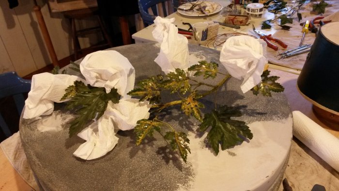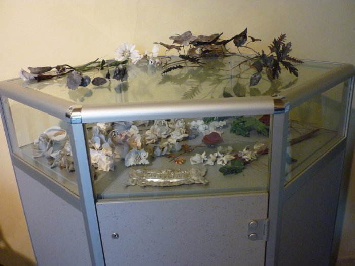 Alles werd vochtig door condens of lekkage en het ijzerdraad ging roesten, waardoor veel bloemen en bladeren van de krans vielen en werden verwijderd.