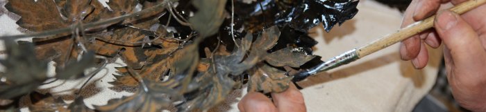 Tijdens een restauratie worden alle blaadjes en bloemen met de hand gemaakt uit metaal, met kralen of van porselein.