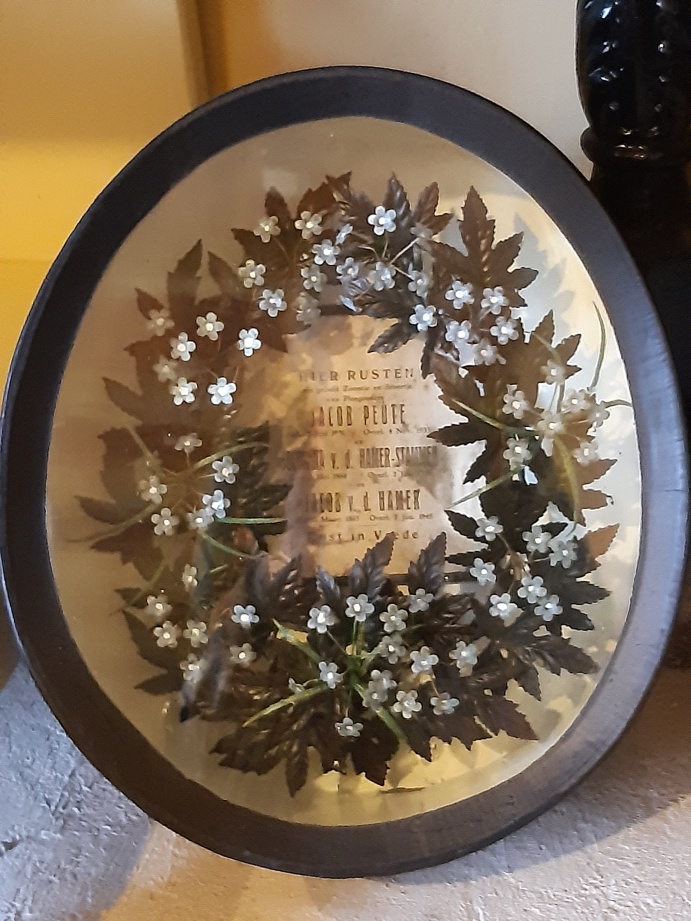 Daar de krans vol met verschillende soorten blad en bloemen zit is het een kostbare krans geweest voor een man met aanzien in de Kolonie. Er woonden toen veel ‘Kolonisten’ van eenvoudige komaf uit het westen van het land.