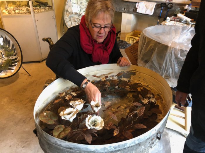 Eind maart 2023 bezochten wij opnieuw het graftrommelmuseum annex restauratieatelier in het Drentse Veenhuizen. De aanleiding van het bezoek was een restauratieopdracht van een klein grafkransje. Dit was klaar en eigenlijk te kwetsbaar om op te sturen. Een goede reden dus om weer een bezoek te brengen aan het atelier. Vergezeld van een originele Limburgse kruimelvlaai werden wij hartelijk ontvangen door Pieke en Leo van Doorn, de beheerders en drijvende krachten achter het museum. Enkele jaren geleden lieten wij twee graftrommels en een grafkrans restaureren bij hen.