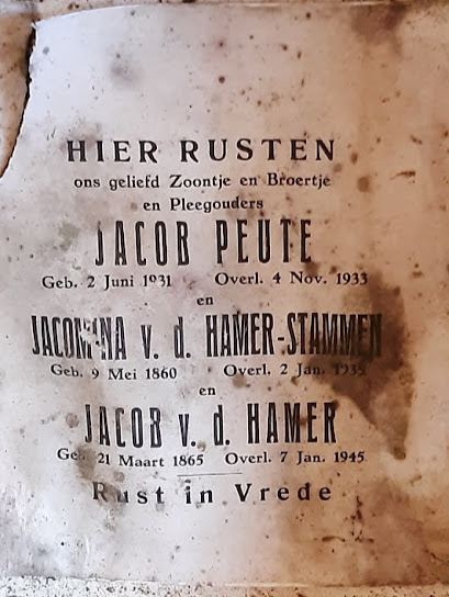 Jacomina v.d. Hamer-Stammen en Jacob v.d. Hamer zijn oud oom en tante van Klazina Evertse, de moeder van Jacob Peute. Zij bevalt op 2 juni 1931 van de kleine Jacob. Op dat moment is de vader nog niet bekend.
